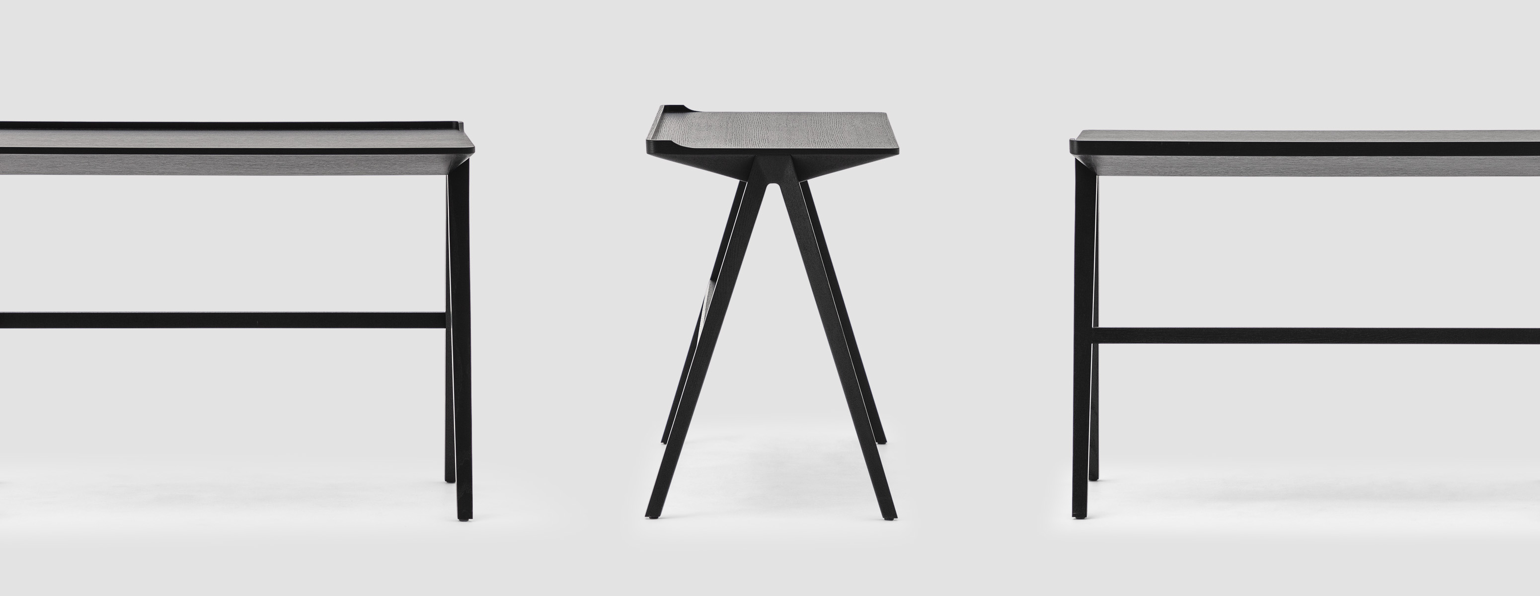 当几何理性遇见木质温润,在方寸间平衡功能与诗意。灵感源自圆规的平衡美学,以对称Y形支撑结构搭配梯形桌面,在小空间内构筑视觉韵律。
