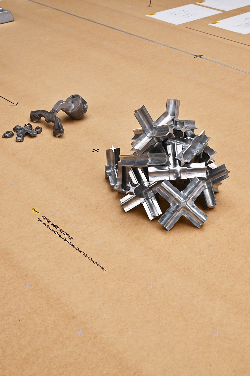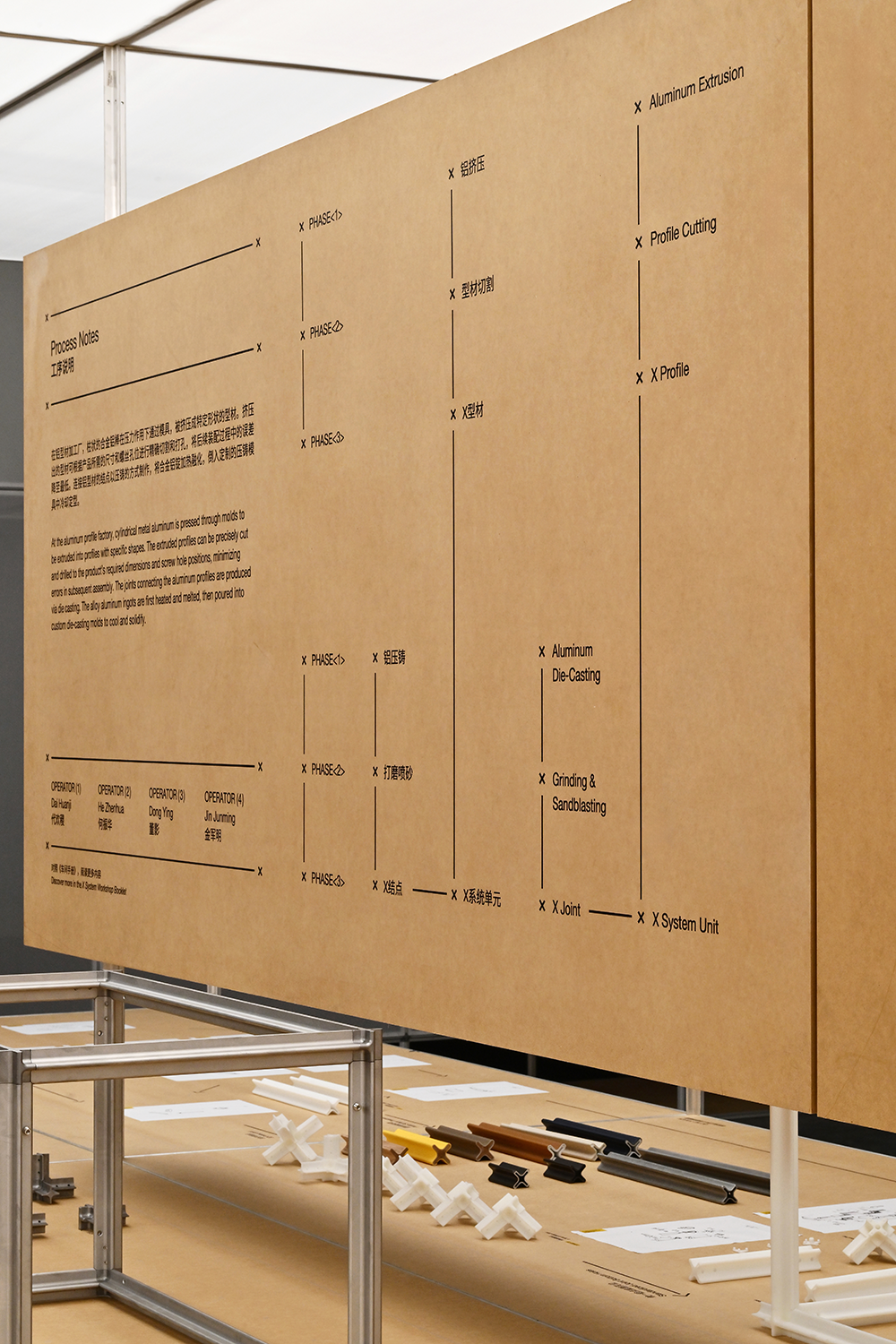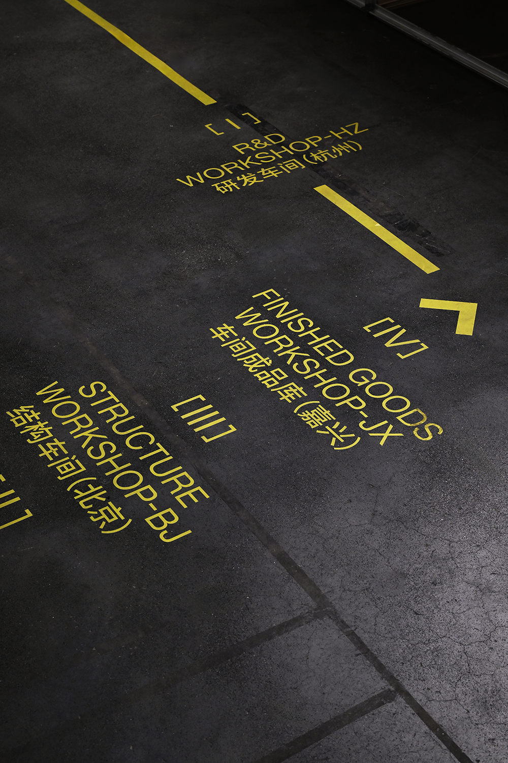 同时,展览将杭州、佛山、北京、嘉兴分别设定为研发、零件、结构、成品四个“车间”,并赋予相对应的视觉引导与展览文本。结合可以在场领取的《车间手册》中X System所关联的数十人的访谈,观展者可以深度理解四个地域所代表的研发与制造个体,如何通过这一件产品,折叠而成一个有机生态。