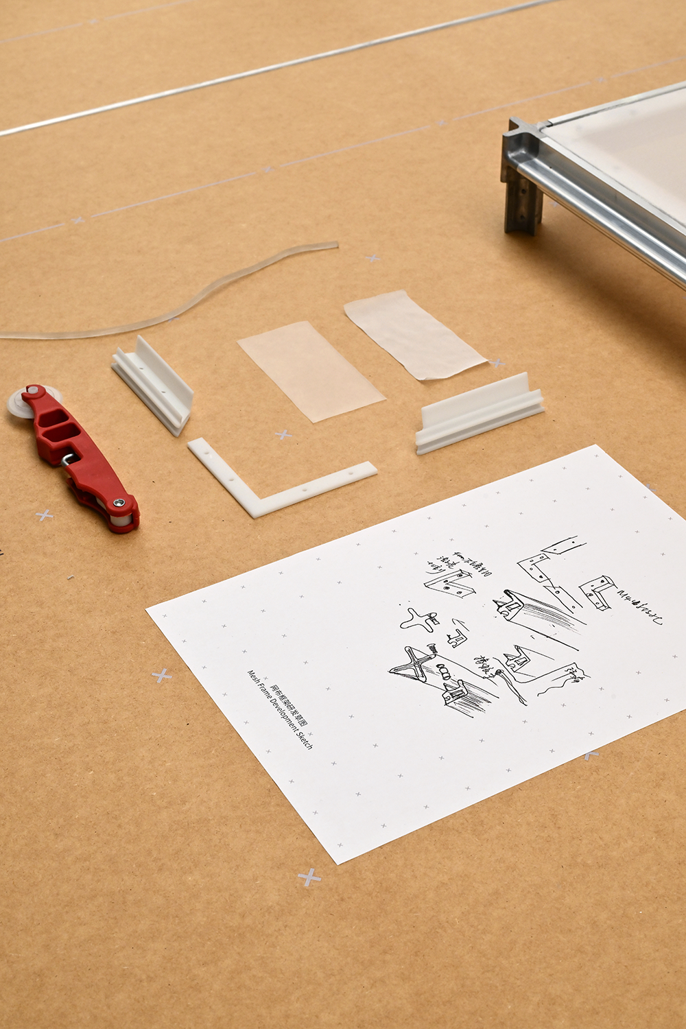 「折叠车间 X System Workshop」展览以“车间”为概念,直观地呈现X System的研发制造过程。展览现场整理了上百件实物,包括设计阶段的概念图、手稿、3D打印模型,打样测试阶段的原材料、模具,工艺开发阶段的零配件、不同表面处理的型材和结点,以及最终的部分成品等物件。