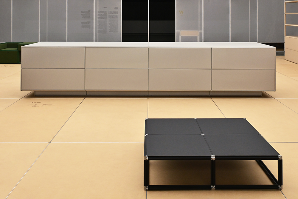 在4个研发制造“车间”之外,展览单独设定了一个“组装车间”,现场演示X System基础单元的组装过程,参观者也能参与组装体验,让产品与人的距离更为接近。在“组装操作台”的另一侧,还呈现了X System的可持续设计探索。通过回收和加工,材料和部件均可在家具、展陈等方面再次得到利用。